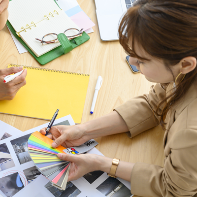 打ち合わせには直接デザイナーがお伺いし、お客様のご希望、目的、現状の問題点などをできるだけ詳しくお聞かせください。営業マンを挟まないので、内容からデザインの方向性までその場でしっかりつめられます。